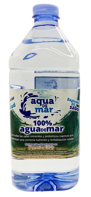 Agua de mar captada en el Parque Natural Cabo de Gata (Mar de Alborán). A 1300 metros de la costa y a 38 m de profundidad. Sometida a distintos filtrados en frío, respetando todas sus cualidades y bondades.