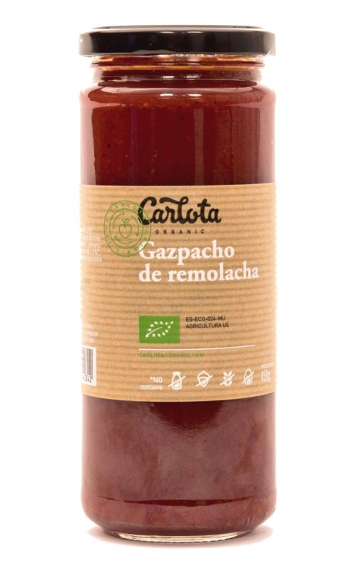 Con aceite de oliva virgen extra. Vegano. Bajo en grasas. Sin GLUTEN. Sin alérgenos. Sin azúcares añadidosLas sopas frías Carlota Organic ideales para los días de calor en un nuevo formato 450g fácil de llevar a la playa o al trabajo