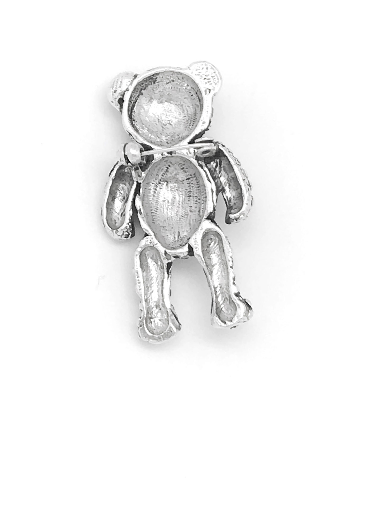 Broche de zamak chapado en plata de ley y acabado envejecido con forma de osito Teddy en tamaño 5x3cm Cierre de seguridad, Diseño exclusivo Gloria Mago,